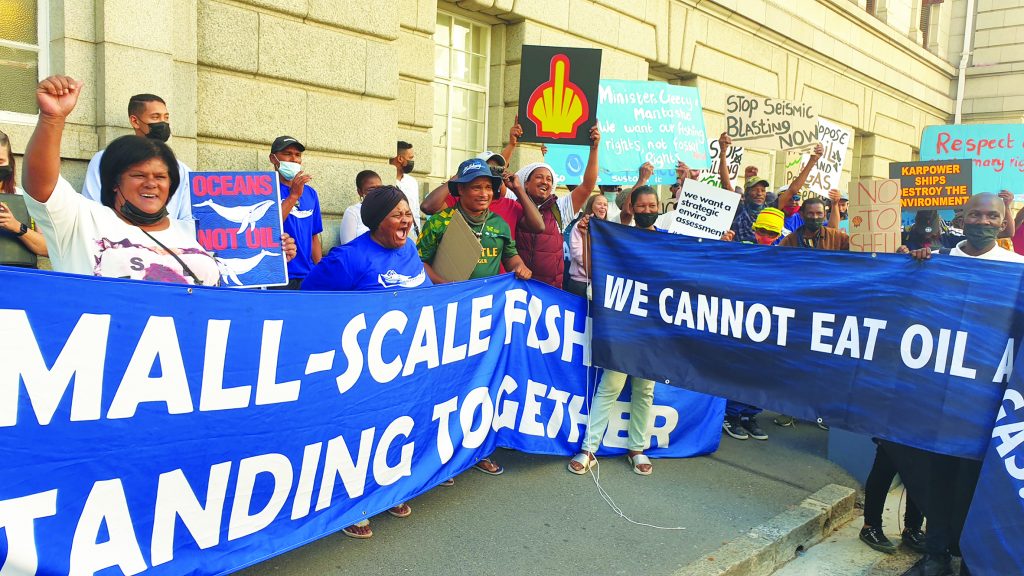 On 24 February 2022, small-scale fishers from up and down the coast stood side-by-side with environmental justice activists and other supporters outside the High Court in Cape Town, demanding the recognition of their human rights and their right to protect and defend the ocean. On 1 March, the judge ruled in favour of the small-scale fishing communities and noted that the company had failed to consult them adequately. The court prohibited Searcher Geodata from continuing with the seismic survey, pending the outcome of a review of the Minister’s decision to grant the company a permit without an EIA.