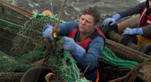 How fishers carry out challenging tasks at sea in conjunction with the natural elements in a magnificent but risky environment is depicted in Des Hommes à la mer (Men at Sea) by Alexandre Ruffin, which depicts fishers constantly adapting to variations of weather and economic or administrative conditions.