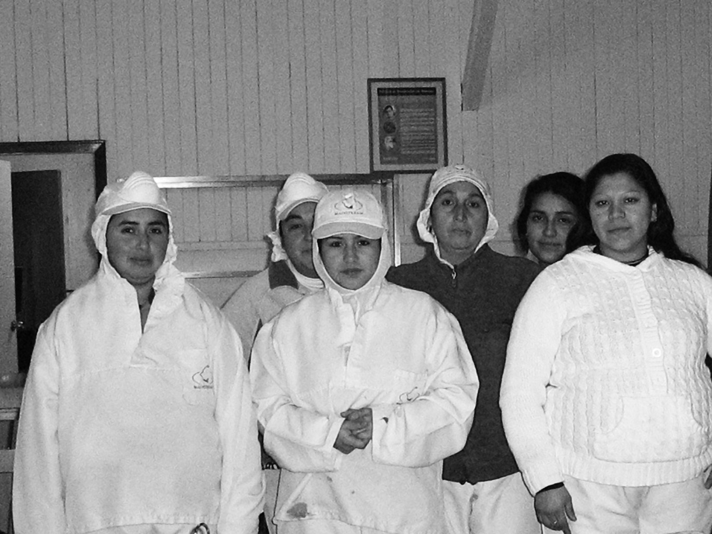 Pregnant women during a break in the factory canteen of the multinational, Mainstream/Cermaq, at Calbuco, Chile.