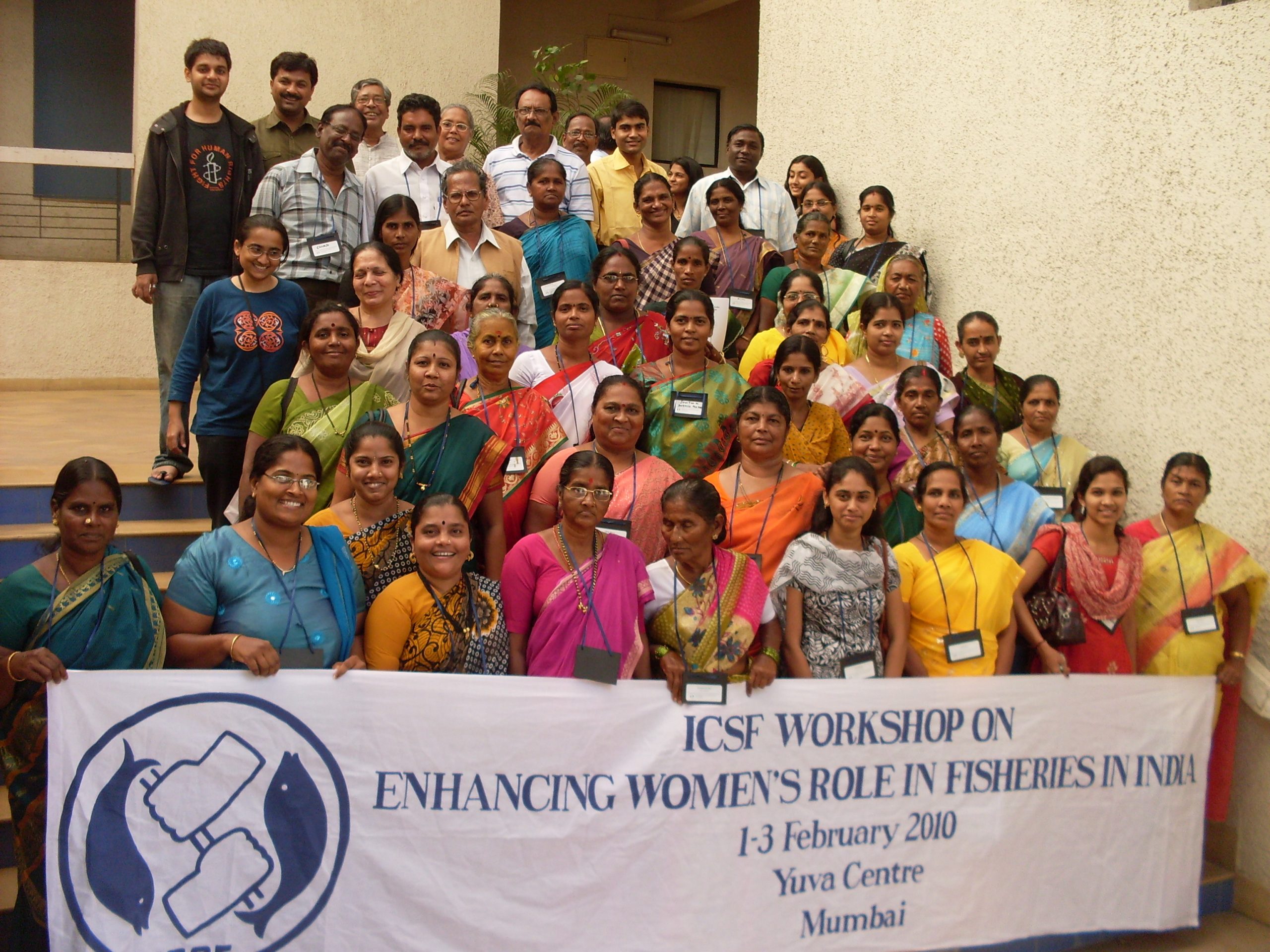 55 participants, mostly women, at the ICSF workshop on “Enhancing Women’s Role in Fisheries in India”.