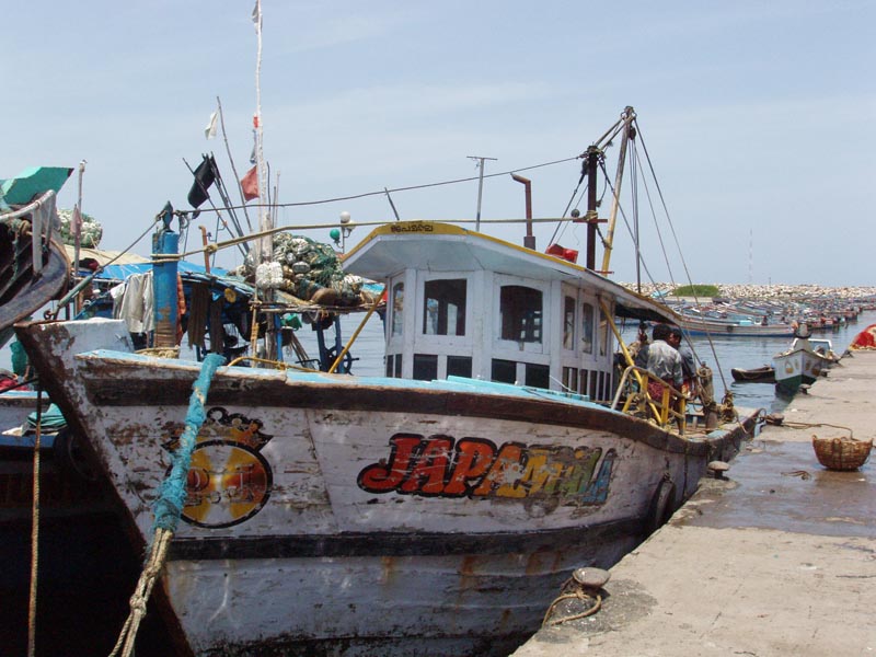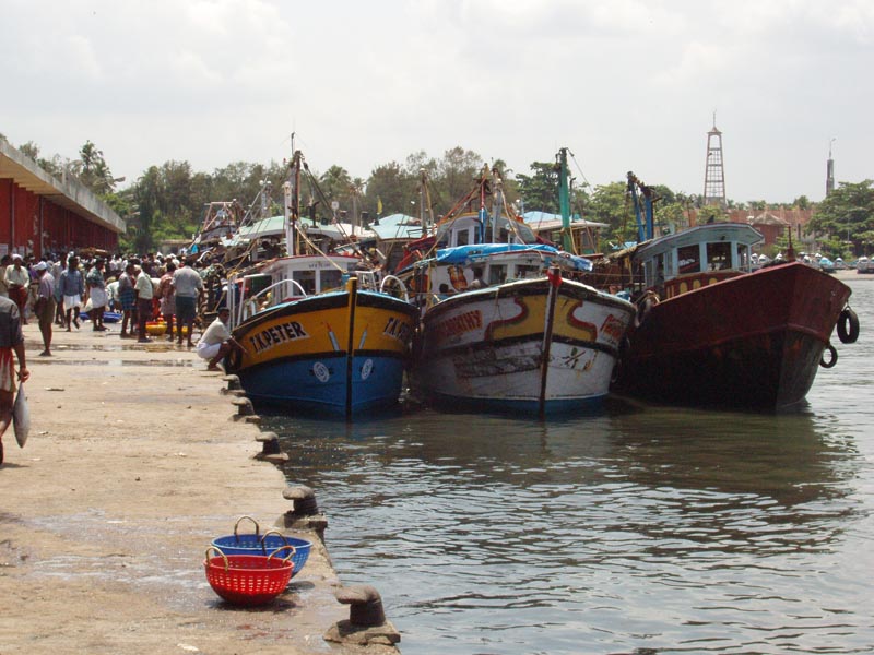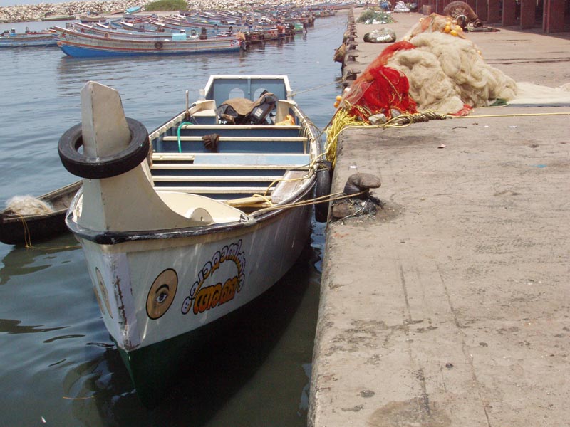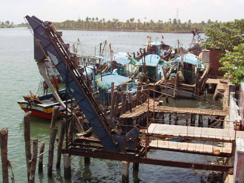 Fishing craft at Neendakara fishing harbour, Kerala, India