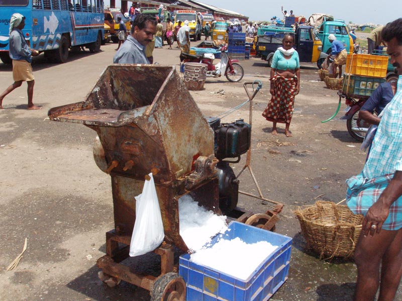 Ice crusher at Neendakara fishing harbour, Kerala, India