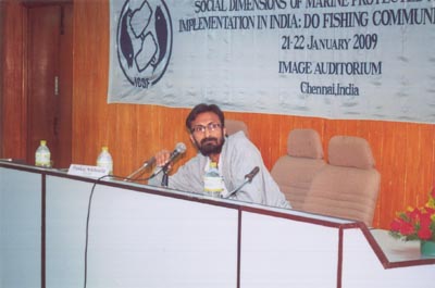 Pankaj Sekhsaria, Chairing the presentation of Sundarban Tiger Reserve and National Park, West Bengal during the during ICSF Workshop on Social Dimensions of Marine Protected Area Implementation in India: Do Fishing Communities Benefit,21-22 January 2009, Chennai, India