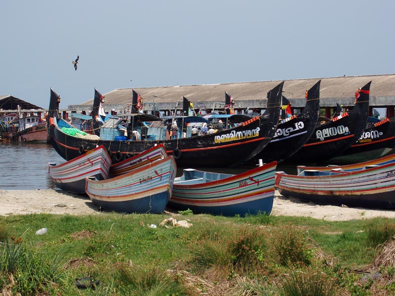 Fishing craft at Neendakara fishing harbour, Kerala, India