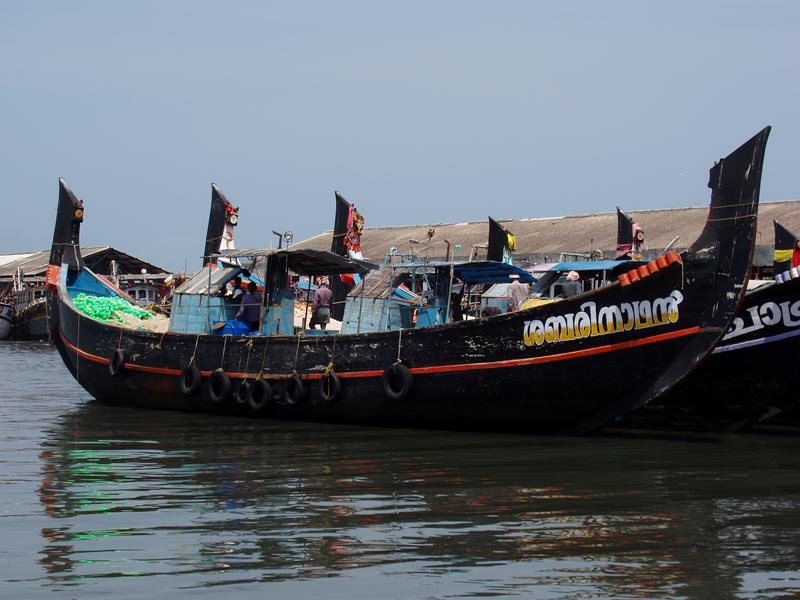 Berthed fishing craft at Neendakara fishing harbour