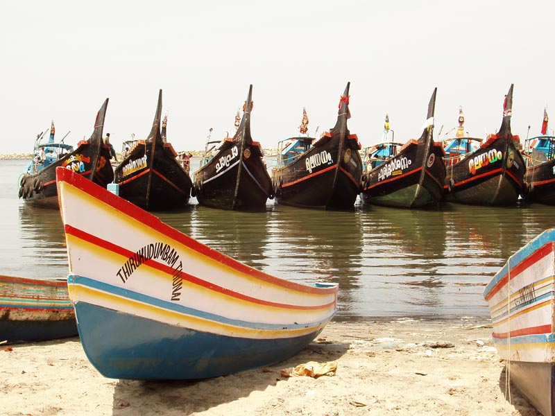 Artisanal fishing craft at Neendakara fishing harbour, Kerala, India
