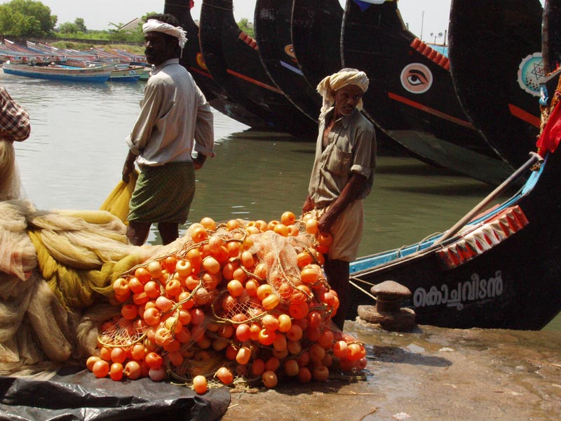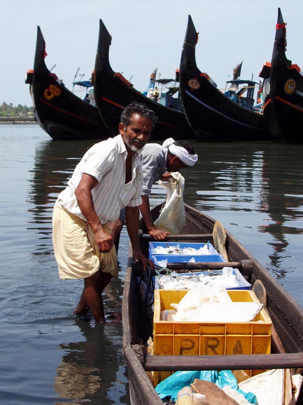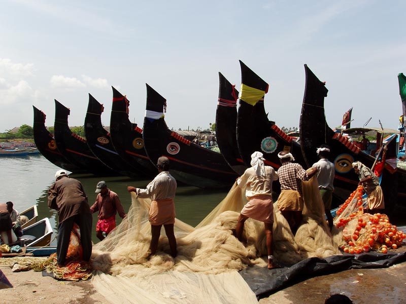 Fishing at Neendakara fishing harbour, Kerala, India