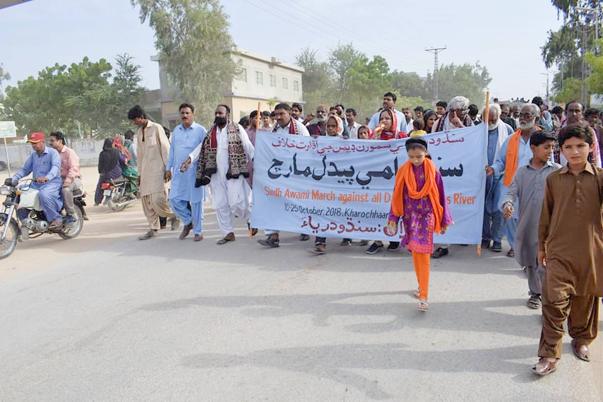 Sindh Peoples Long March 2018 against all dams on River Indus in Pakistan. The natural flow of water and fertile sediments from the Indus River into the delta has been impeded due to the construction of dams and barrages along the river.