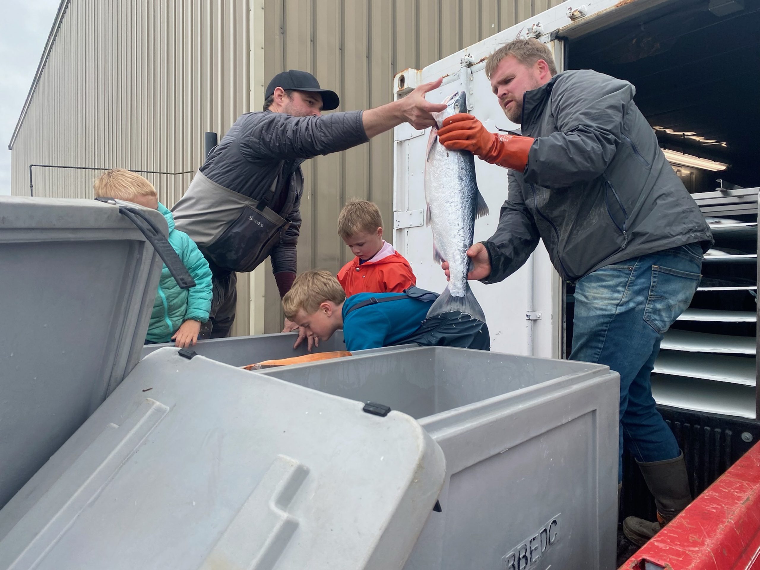 Gathering sockeye salmon for distribution to families in need along the Yukon River, Alaska. On the Yukon River, families that have depended on salmon since time immemorial can no longer harvest fish; it amounts to a loss of sustenance, culture and inter-generational connections.