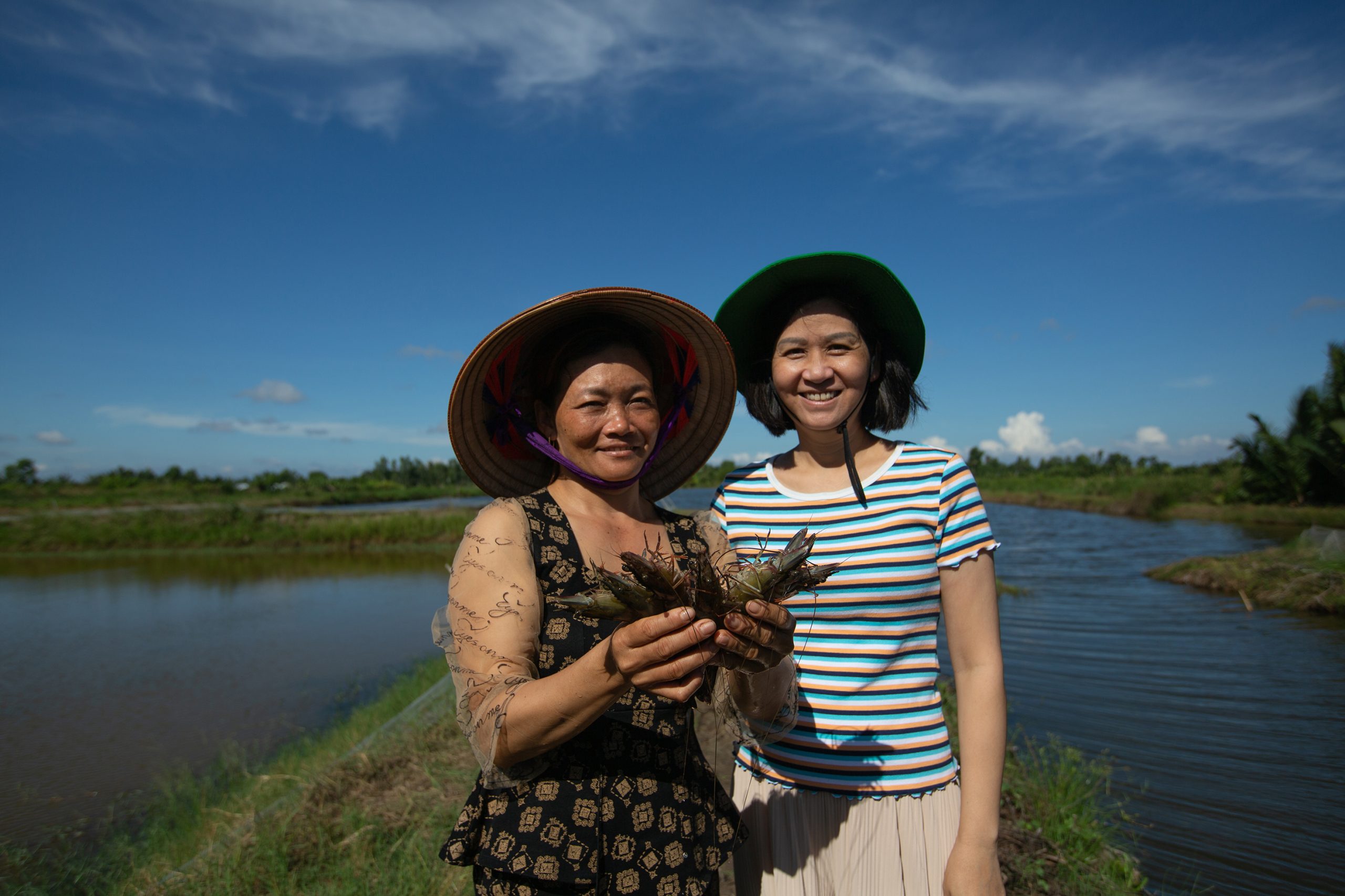 Shrimp harvesting in Tri Luc Commune, Ca Mau Province, Vietnam. In Ca Mau, the shrimp-rice model dominates farming activities because of its high economic efficiency.