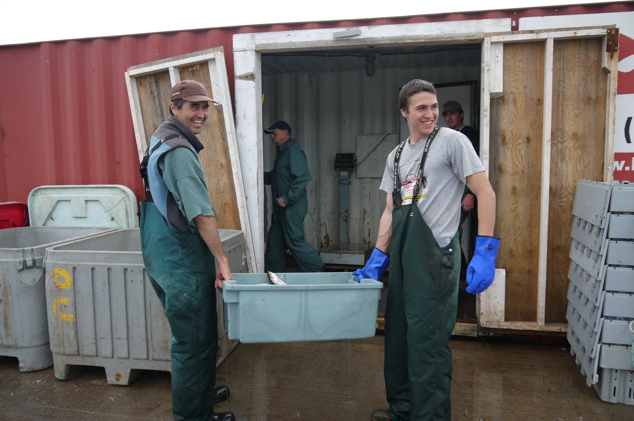 Father and son, Gordon and Dylan Beaton, fishermen both, lifting a bait box. After decades of neglect, change is on the horizon for Canada’s fishing communities.