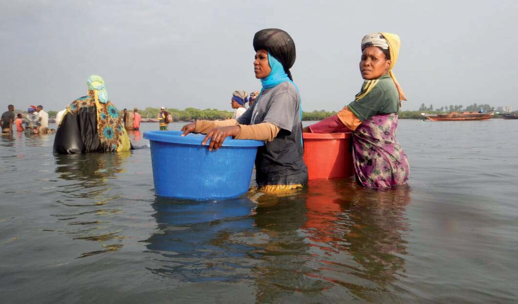 Women sardine traders awaiting for fishing vessels to dock, Tanga, Tanzania. Tanzanian fishers employed by industrial fishing vessels are comparatively better organized and better-off since they fall under the formalized employment regulations.