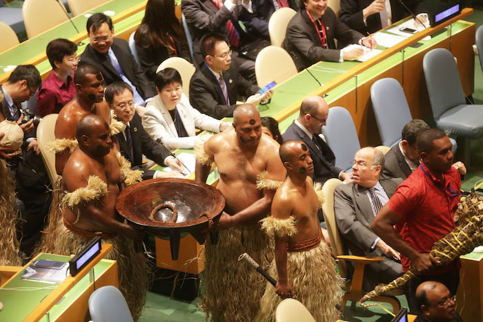 Opening of the UN Ocean Conference’s Kava ceremony. Presentations and sharing of each subject related to SDG14 were organized as Partnership Dialogue.