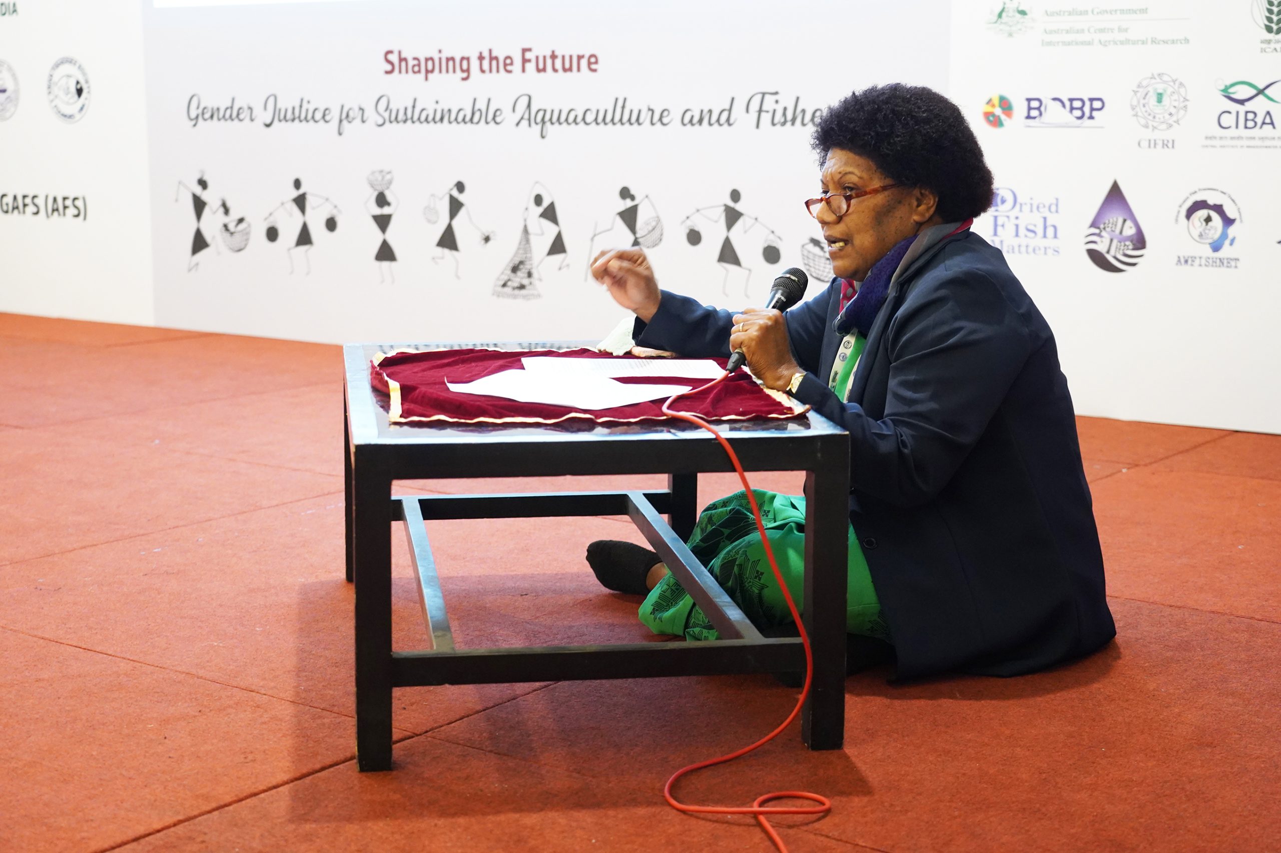 Tarusila Veibi, a fisherwoman and welfare worker from Fiji. An enabling environment is critical for gender justice, and institutions have a crucial role to play in creating an environment where women, particularly, poor and marginalized women, are safe and can hope to thrive.
