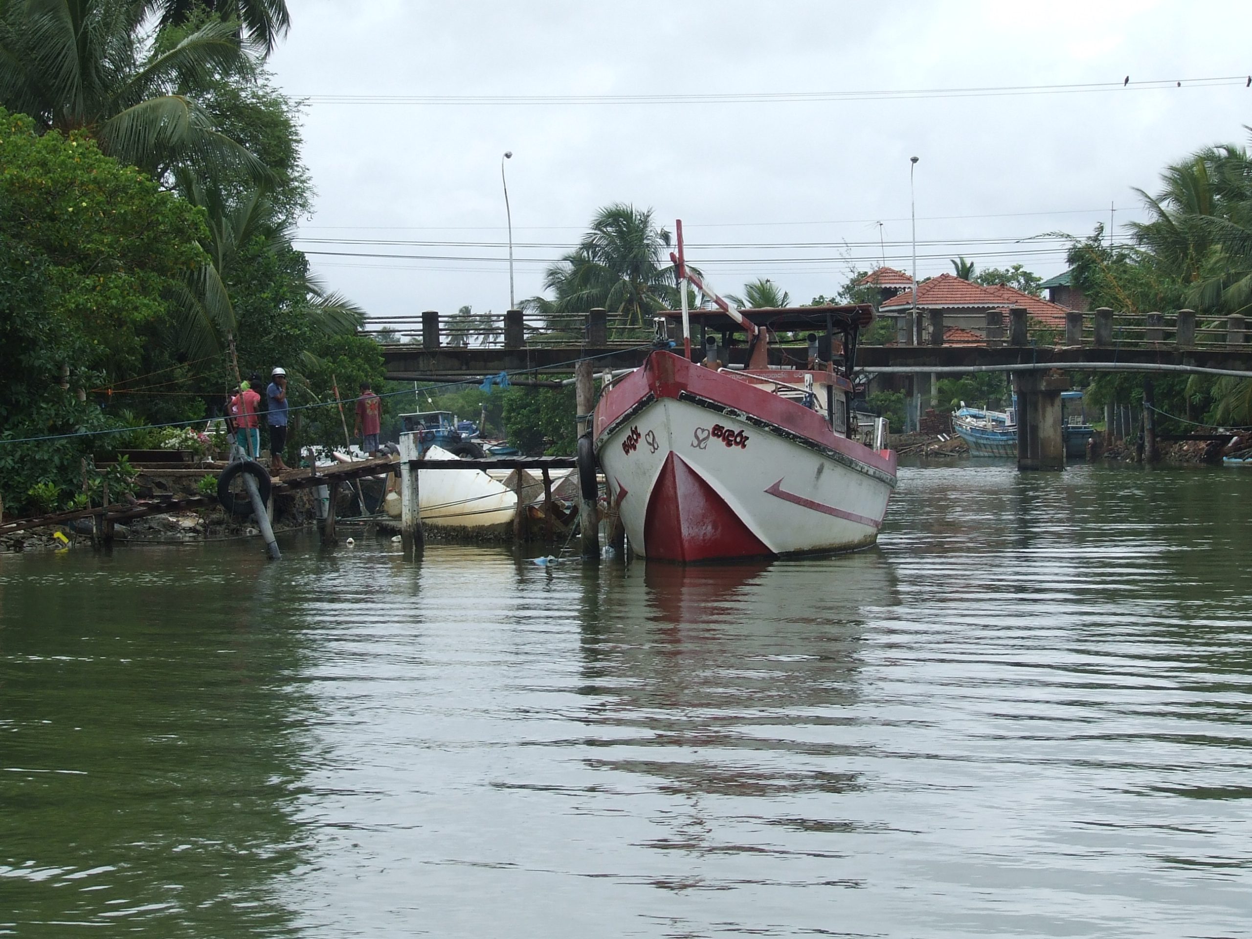 A boat anchored at the Negombo lagoon. The major problems facing the lagoon include the discharge of sewage and dumping of solid waste from homes and businesses.