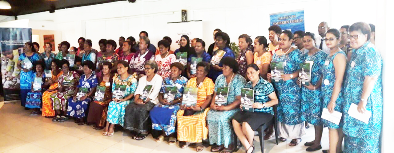 Participants at the Women in Fisheries Forum with their copies of the gender stock take report that was launched. At the forum, success stories were shared by women fishers from Ra who run a very lucrative trade in sea-grapes.