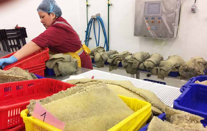 Women dominate the seafood processing sector, converting the catch into marketable and consumable products. Here a Heiltsuk woman grades herring spawn-on-kelp for international export at Bella Bella’s fish processing plant in the Traditional Territory of the Heiltsuk Nation, Canada.
