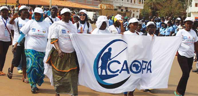 International women day marching in Guinea Bissau on 8 March 2015. The increasing involvement of women in the defining of CAOPA advocacy priorities and in its actions has contributed to show that artisanal fishing communities, particularly women, are innovators and active stakeholder