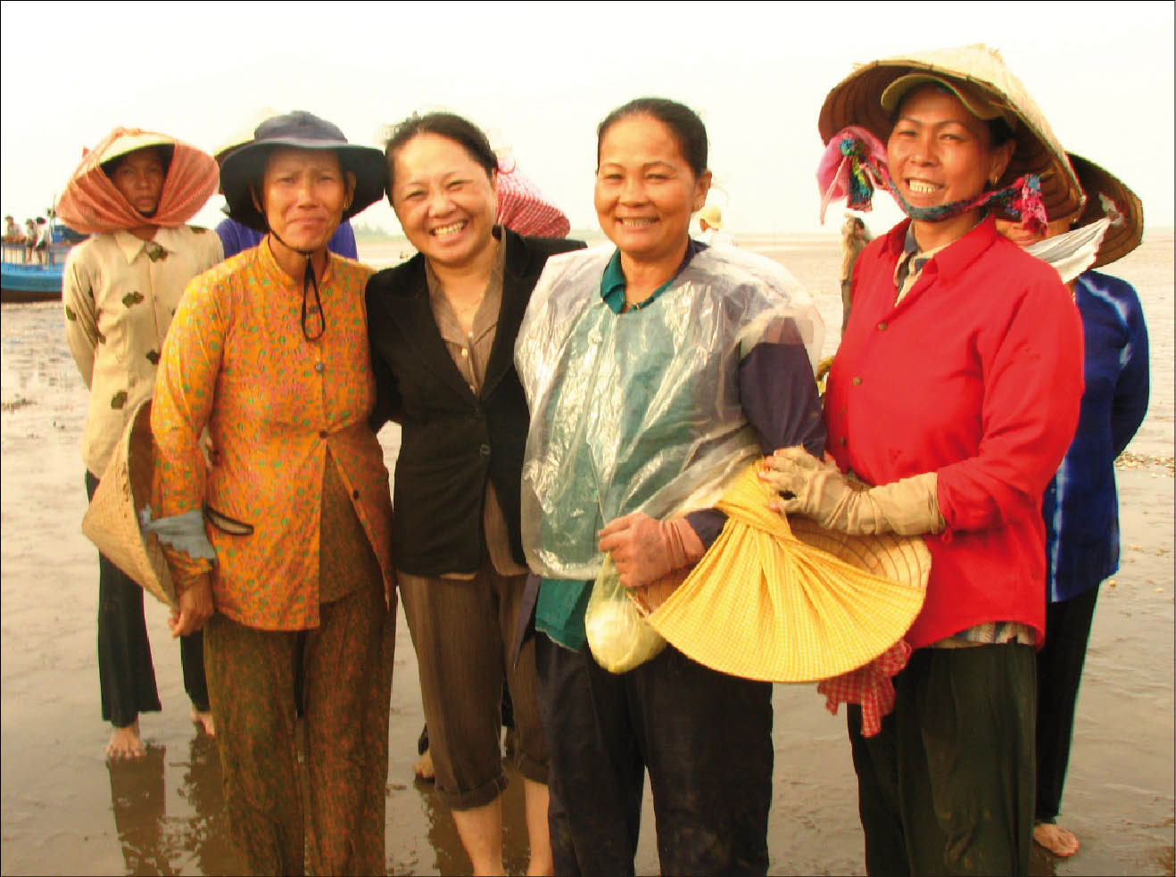 Ms Nga (centre), former Vice Director of Ben Tre Department of Agriculture and Rural Development (DARD), Vietnam, along with co-operative members at the clam field.