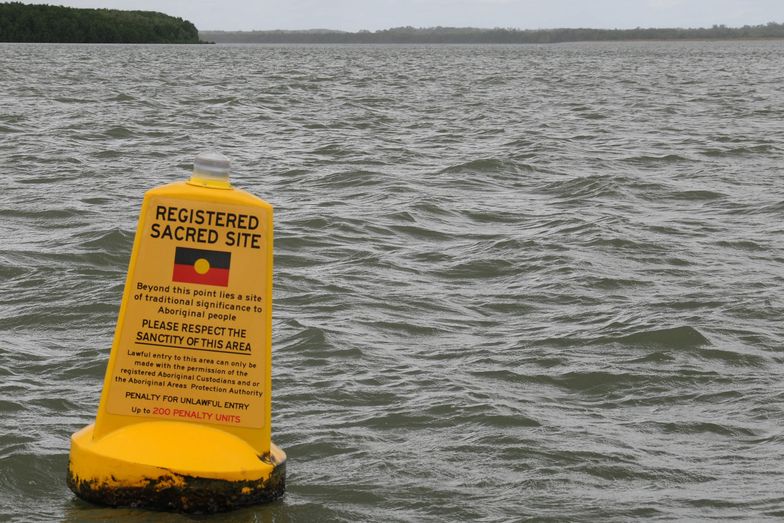 A float marking the aboriginal sacred sites at sea. Protecting and maintaining sacred sites are an essential duty of the Djelk Rangers.