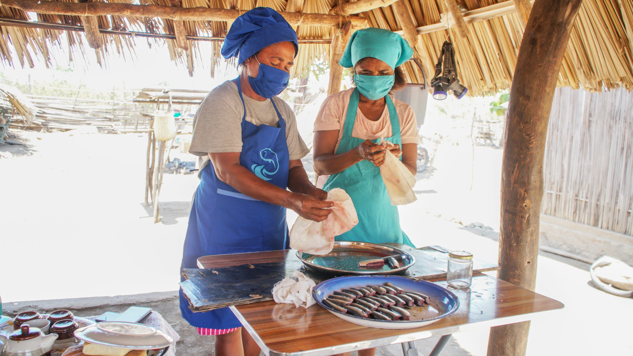 Women processing sardines for local fish-based products. Fishing provides both a direct source of nutritious food and an income for various members of the household through diverse means of processing. Photo Credit: J. Dos Reis Lopes / WorldFish