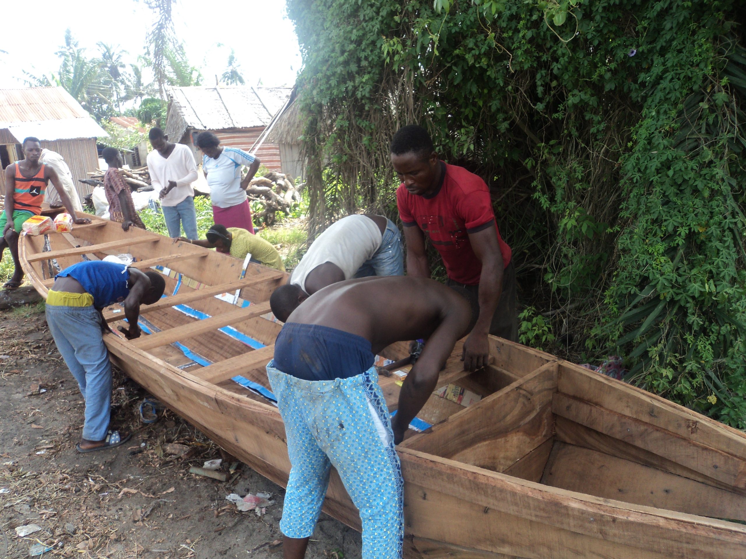 Construction of a planked canoe at Ikosi-Agbowa fishing community, Lagos. Small-scale fishers and fish processors continue to operate during the pandemic but their incomes and profits have declined because of the loss of customers. Photo Credit: Kafayat Fakoya