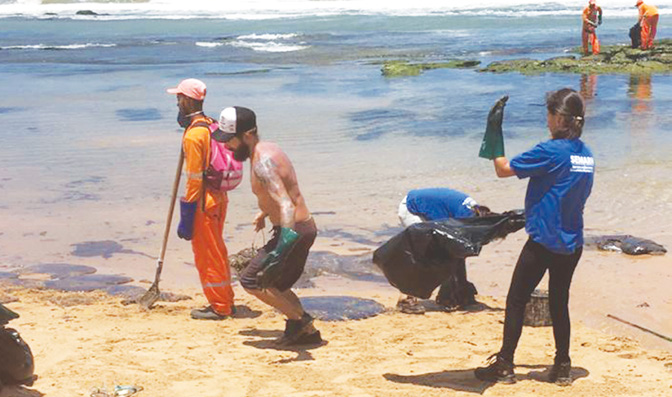 Fishers from Sirinhaem, Garapua and Cova da Onça fishing communities remove oil from the beaches in order to protect their fishing and living places in the Brazilian states of Pernambuco and Bahia. Photo Credit: Fisher's Pastoral Council / Brazil