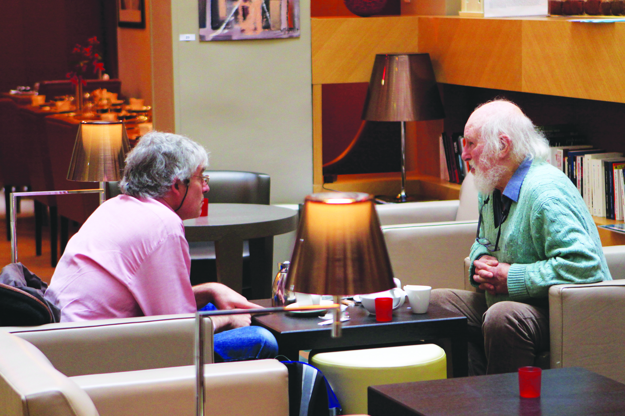 Michael Earle in conversation with Sidney Holt. A colleague of Sidney recently wrote: “I decided from knowing Sidney that any day that one does not laugh is a day wasted.” A fine epitaph to an extraordinary scientist and human being. Photo Credit: Tim