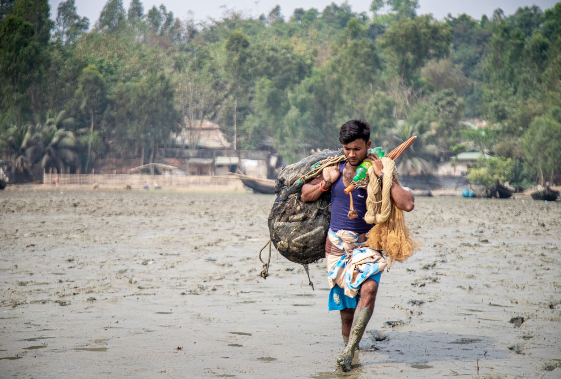 A fisher with his nets in Moheshkhali, Cox’s Bazar. Hilsa, which accounts for 13-14 per cent of the total fish production of Bangladesh, has declined by about 20 per cent from inland waters, whereas the marine catch has increased threefold. Photo Credit: Manusher Jono Foundation