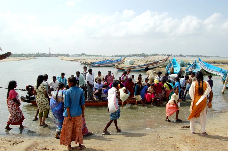 The only means of transportation between Irukkam and the mainland is by boat. Anyone who wishes to leave the village and relocate to the mainland has to pay the Jamaat, a traditional, self-organized village committee, a sum of INR40,000 (USD532). Photo Credit: Saurabh Chatterjee