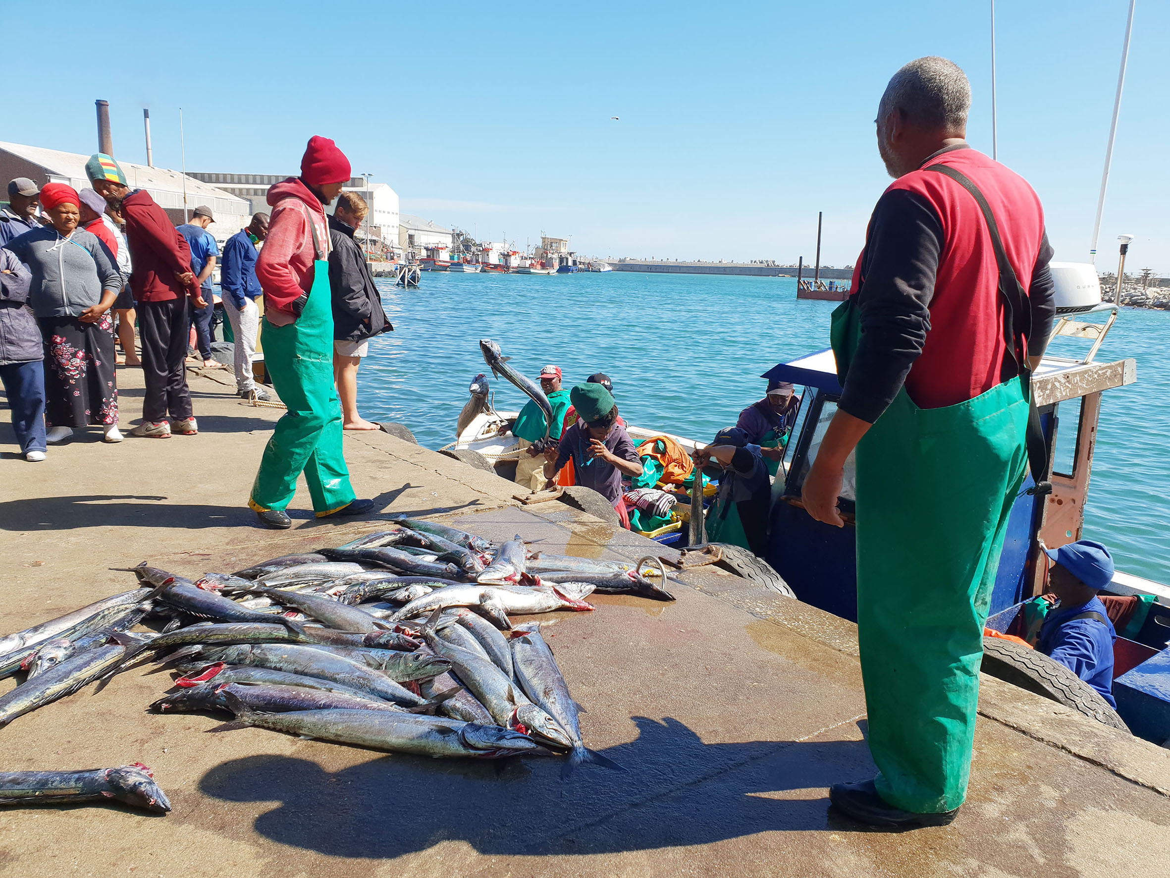 Fishers land their catch at Lamberts Bay on the West Coast, South Africa. Ordinary citizens are becoming aware of how small-scale fishers are the soul of vibrant, healthy coastal communities, providing food and defending the oceans. Photo Credit: Jackie Sunde