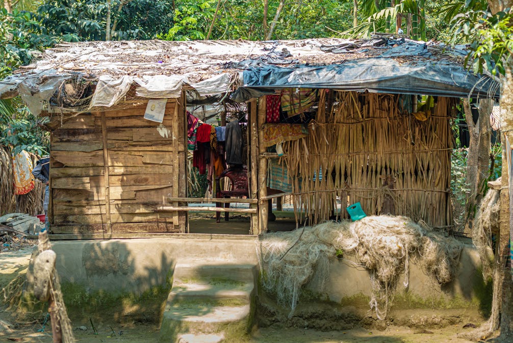 Fisher’s house, Pathrghata, Barguna, Bangladesh. The data shows that the fisheries sector has, on average, more landless and homeless people than in other sectors, and fewer with access to electricity. Photo Credit: Druvo Dash