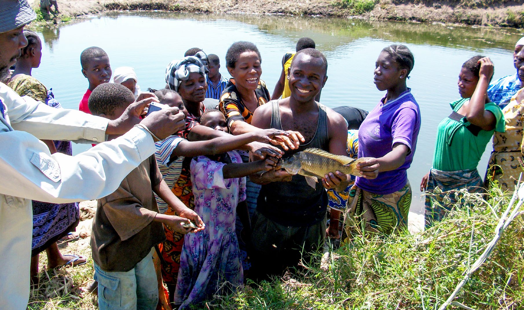 Fish farmers at a tilapia pond in Kenya. It is encouraging that fish farmers in western Kenya have positive attitudes towards fish consumption and are interested in incorporating value-added fish products into their daily diets. Photo Credit: J. Munguti