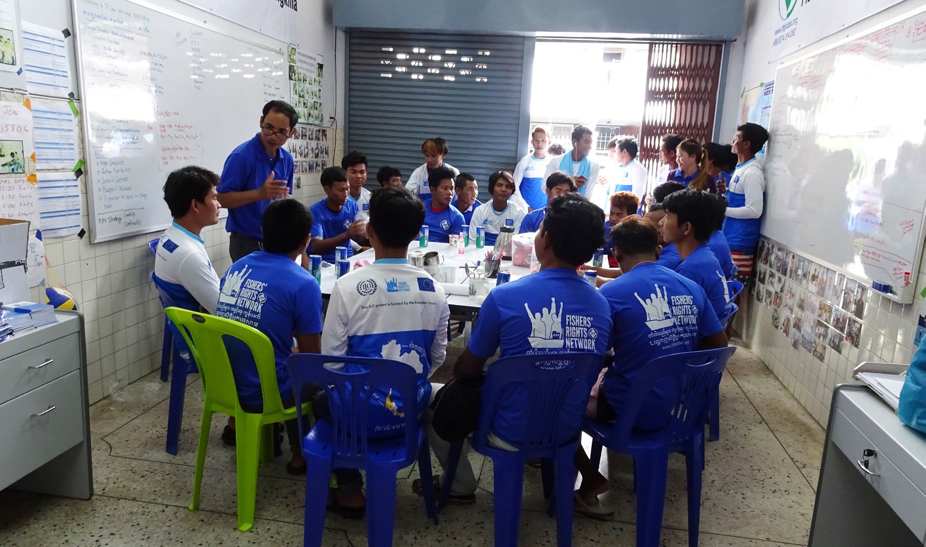 A meeting of fishers in Ranong, Thailand, in January, 2020. Since its inception in 2018, the FRN has organized over 3,000 migrant fishers in three major Thai fishing ports. Photo Credit: ITF-FRN