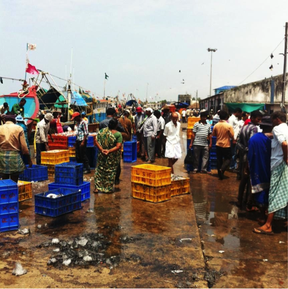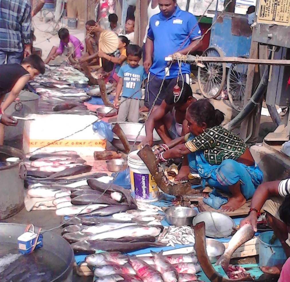Auction at Bund fish market, India. The women fish vendors start their day in the early morning and work through the day till their stocks are sold.