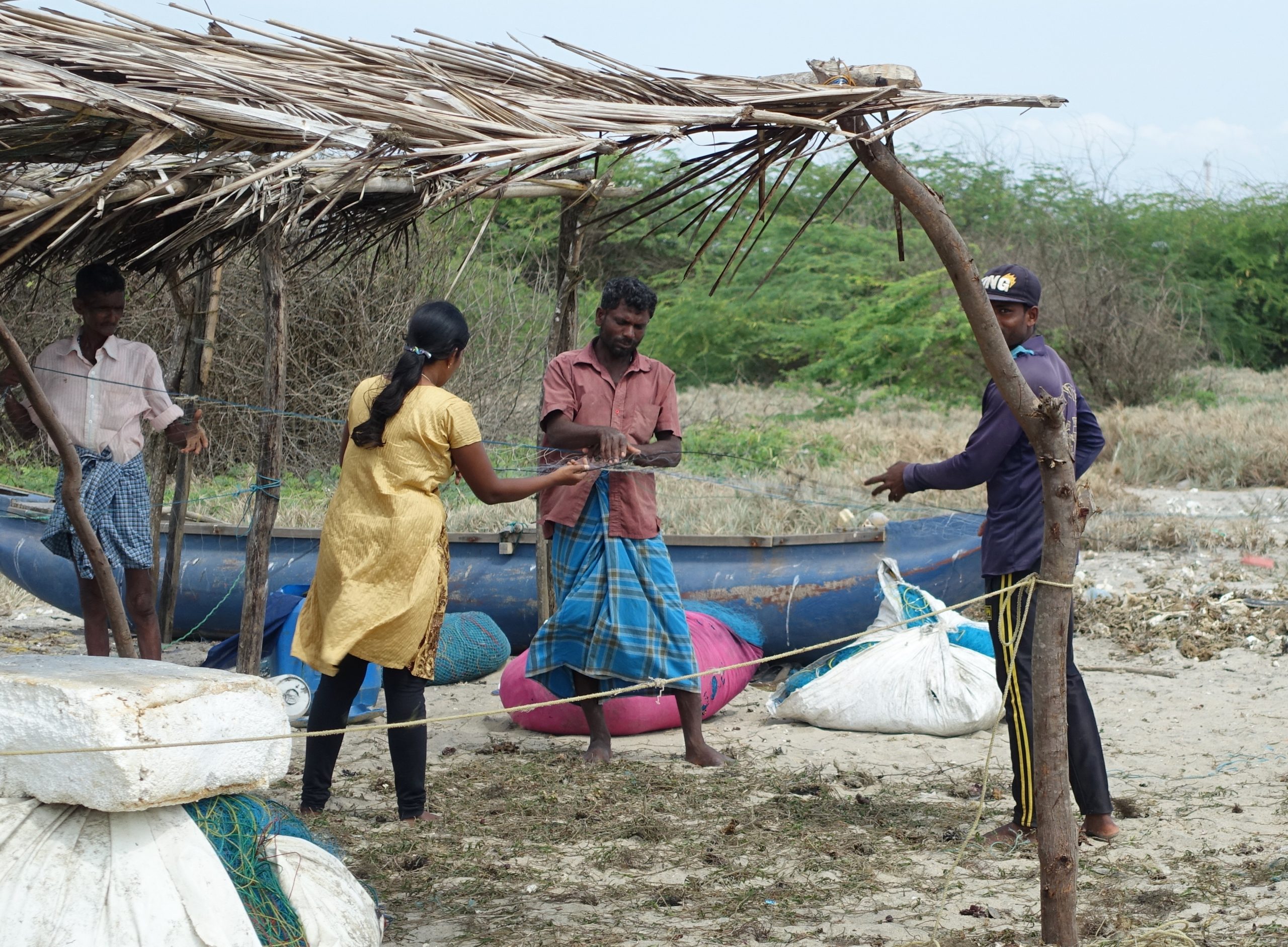 Women helping in cleaning nets, Mannar Island, Sri Lanka. The livelihood of the widows and deserted women is very fragile.