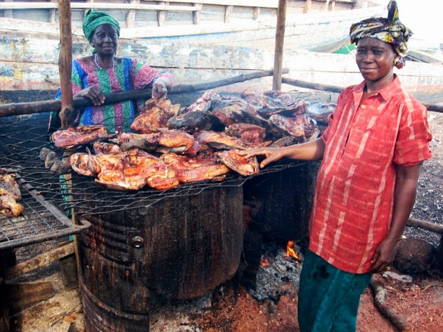 Women fishsmokers in Guinea Konakry. There is a need to support women in these countries and in enabling them to link up with women fishworkers in other countries.