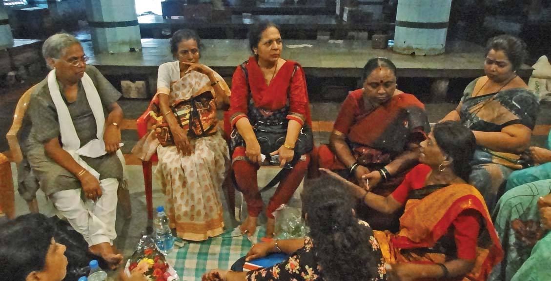Usha Tai in a discussion with representatives of fishworkers organization at a meeting organized by ICSF.